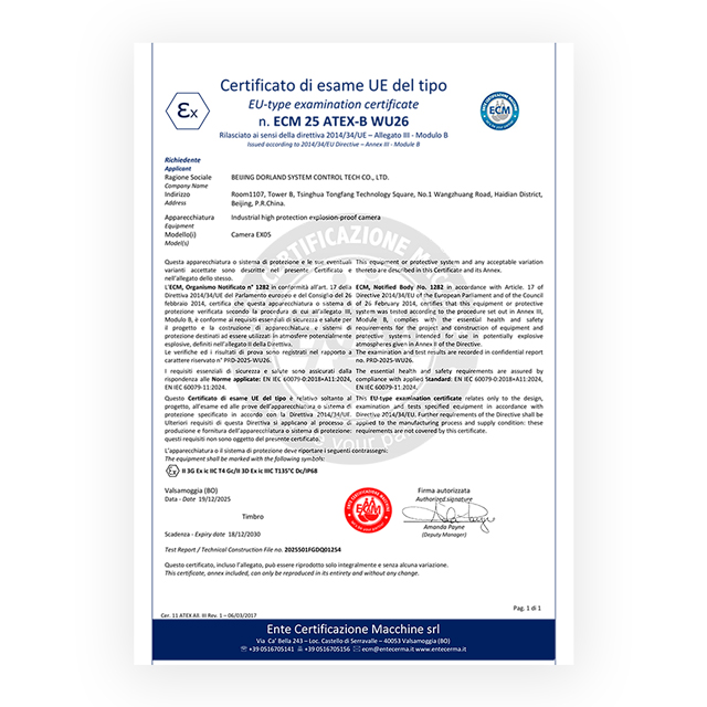 DORLAND System Control Technology Co., Ltd. recently launched Industrial high protection explosion-proof camera Camera EX05, which adopts 13 million pixels, has a digital zoom 18X processor, precise three focusing methods, and presents clear near and far scenes.